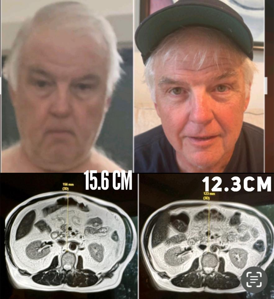 The Result: May scan showed 12.3cm diameter. Charlie lost almost 35% of his visceral fat in 53 days. Look at his face. That's what happens when you eliminate the fat that's killing you.